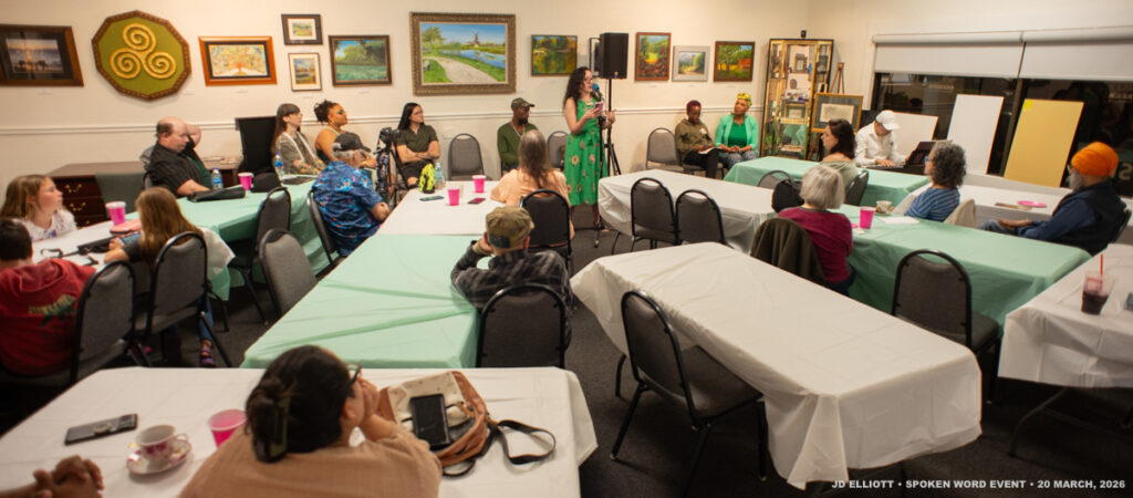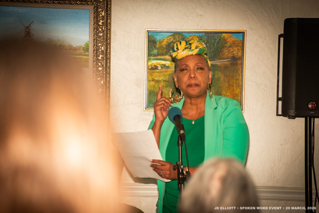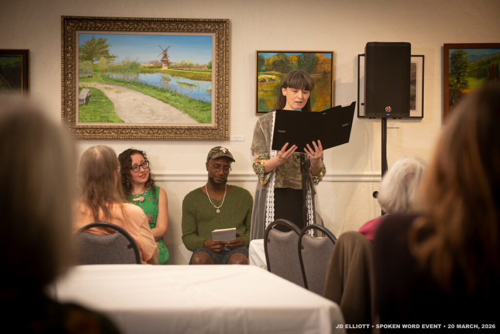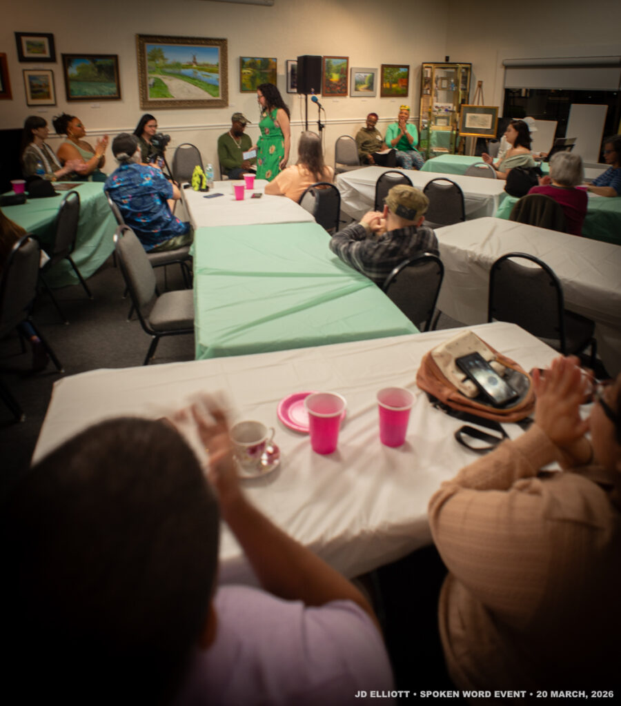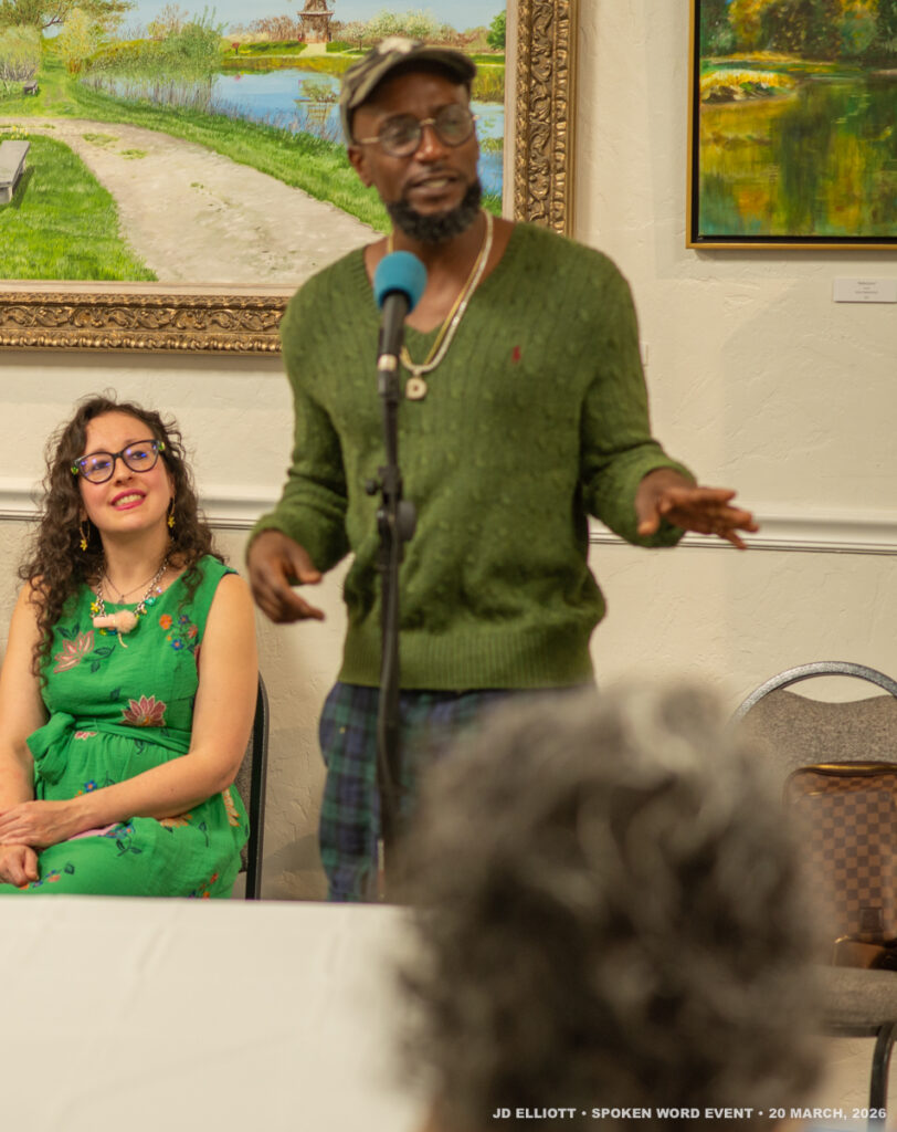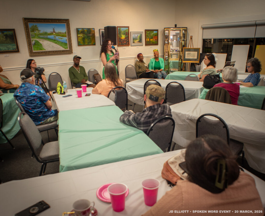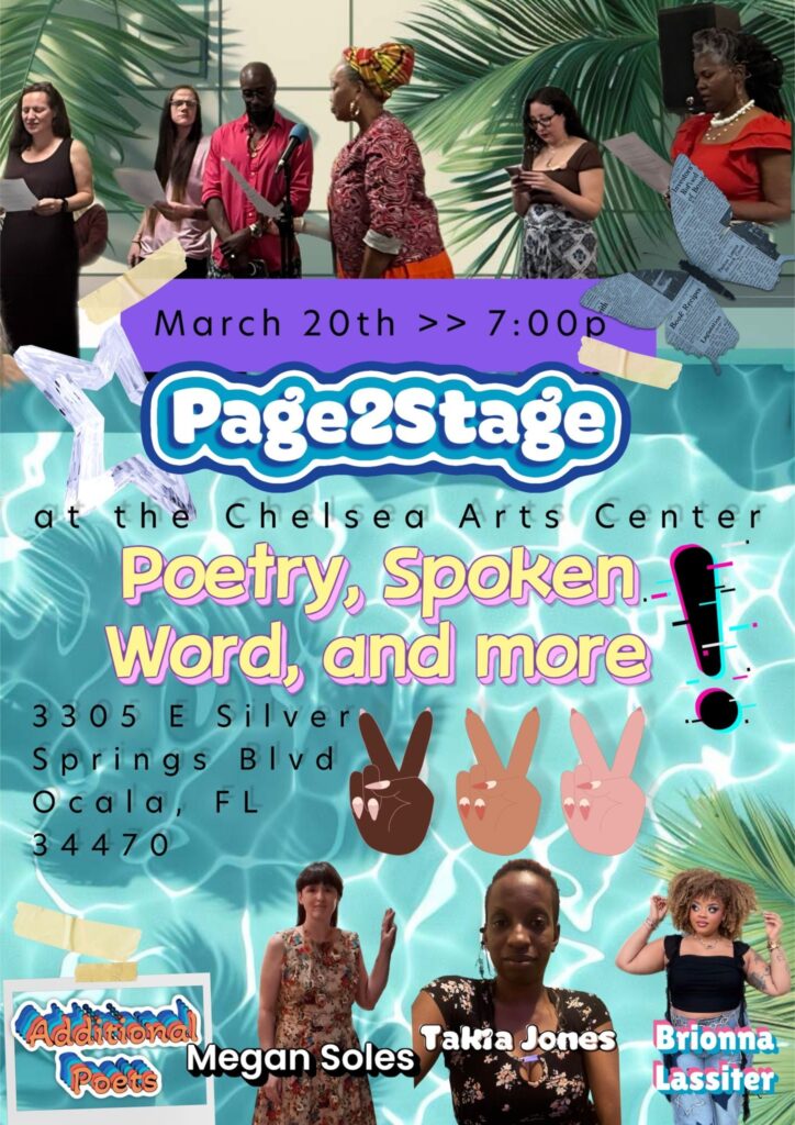Friday, March 20, Chelsea Art Center hosted another inspiring evening of poetry, “Page2Stage”, presented by members of the Spoken Word Ocala group. An appreciative audience enjoyed three sessions of poetic works performed against the backdrop of the current Spring Art Exhibit of works by local artists and music by pianist, Gregorio.