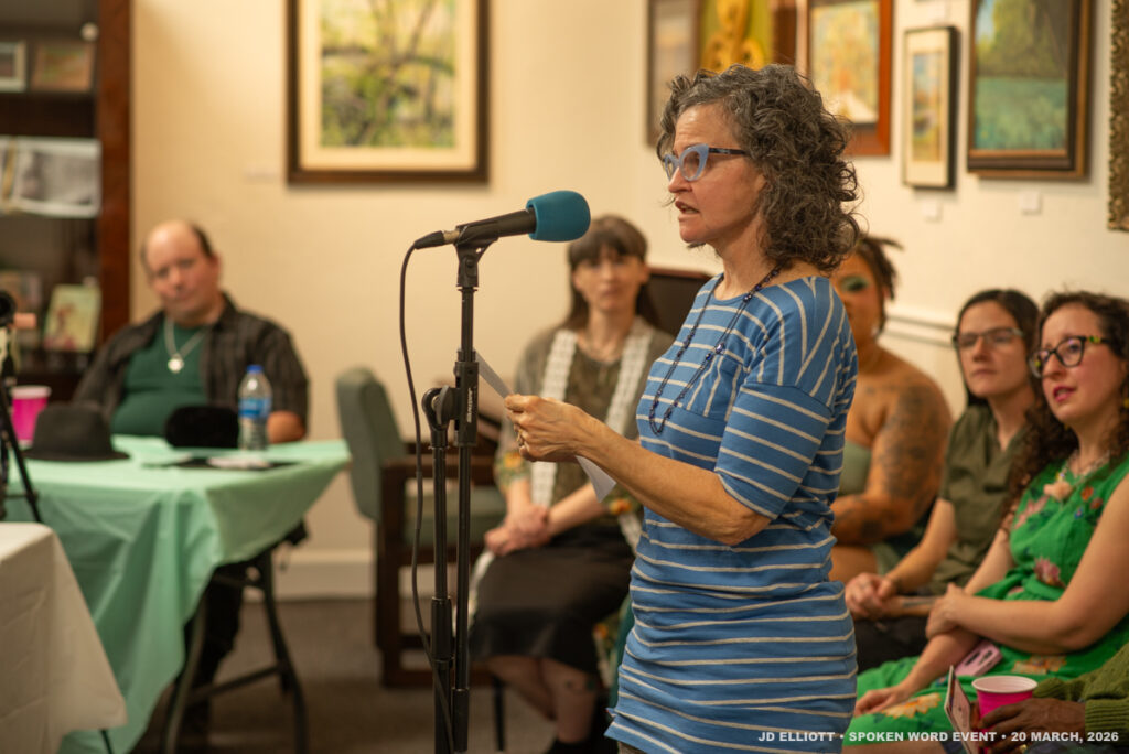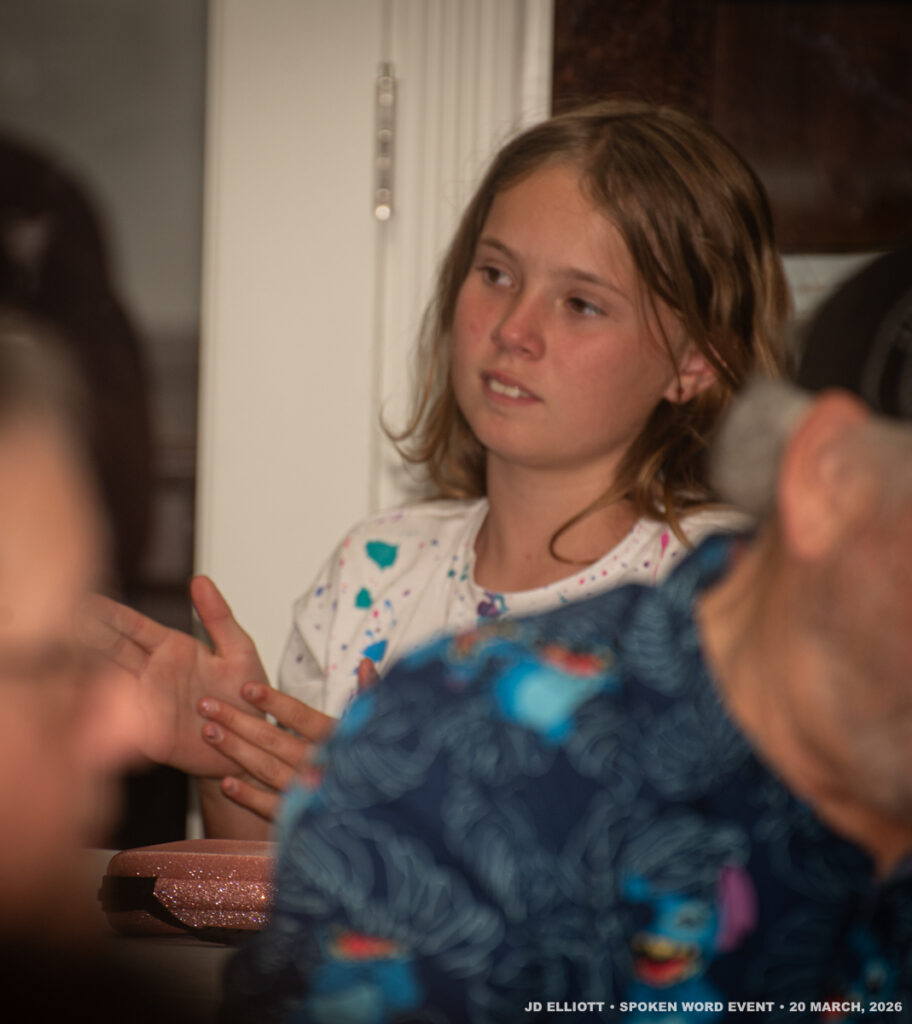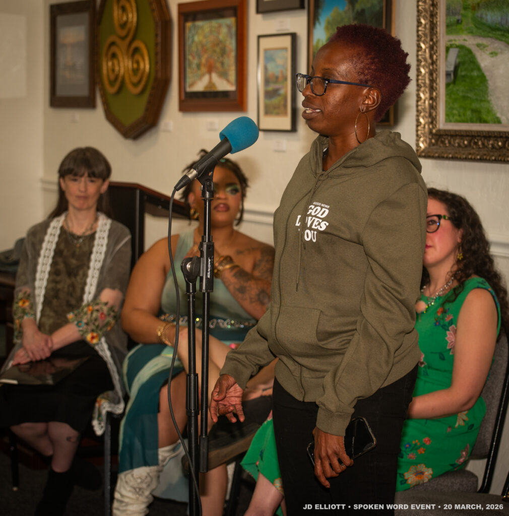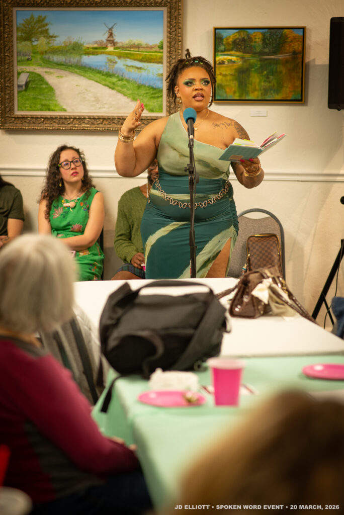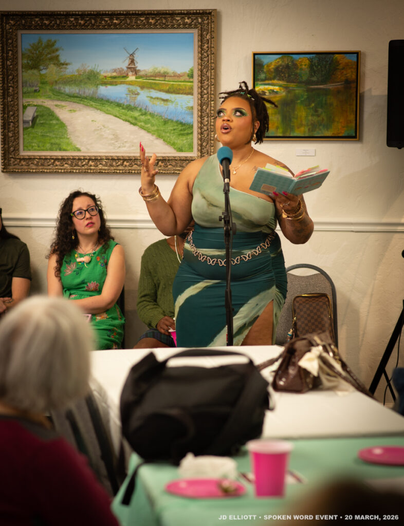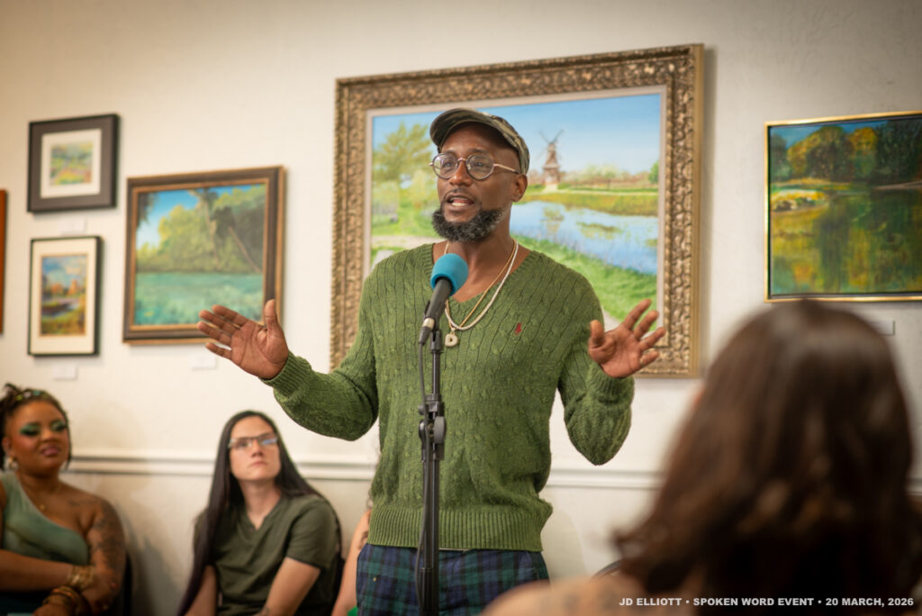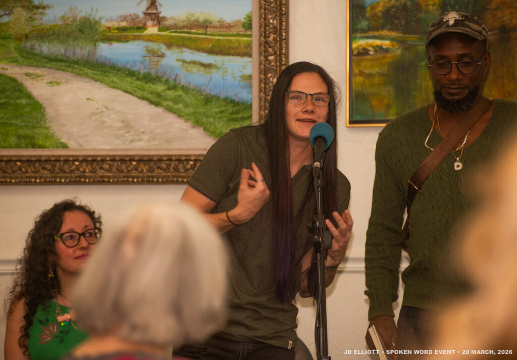 Friday, March 20, Chelsea Art Center hosted another inspiring evening of poetry, “Page2Stage”, presented by members of the Spoken Word Ocala group. An appreciative audience enjoyed three sessions of poetic works performed against the backdrop of the current Spring Art Exhibit of works by local artists and music by pianist, Gregorio.